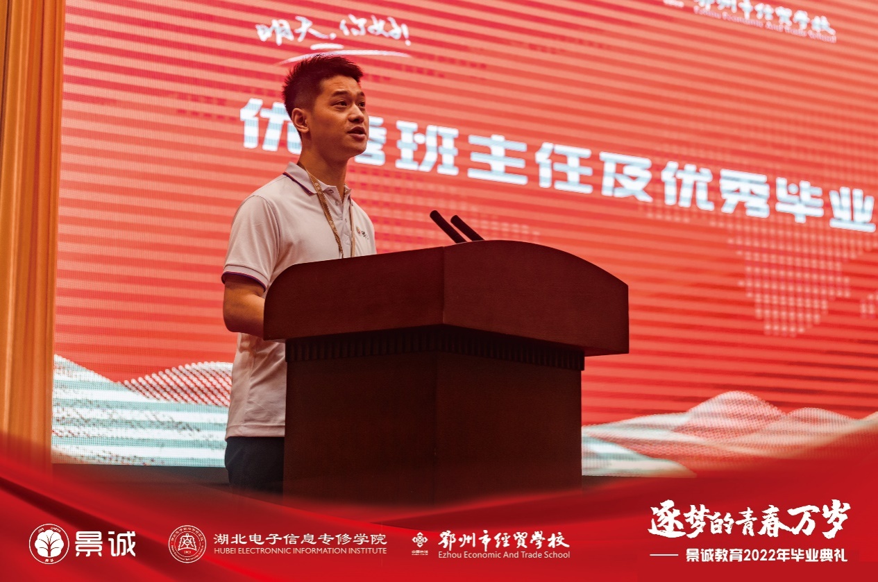 典礼活动上宣读了2022年优秀班主任和优秀毕业生表彰决定。受表彰的班主任、毕业生代表分别发言。